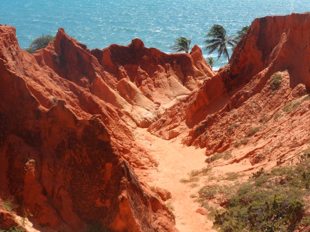 Terceiro dia: Um dos lugares mais incríveis do Ceará que eu queria muito conhecer era Canoa Quebrada. Mas já tinha pesquisado que a estrada que chega até lá não era lá essas coisas para dirigir. Então, contratamos um passeio para ir até lá. A agência nos levaria de ônibus até Morro Branco primeiro onde faríamos (quem quisesse) um passeio de buggy e caminhada pelas lindíssimas falésias. Depois do passeio de buggy seguiríamos para Canoa Quebrada onde eles parariam nos famosos “pontos de apoio” (restaurantes normalmente com preços absurdos pra você almoçar) e ficaríamos o restante do dia em Canoa Quebrada.