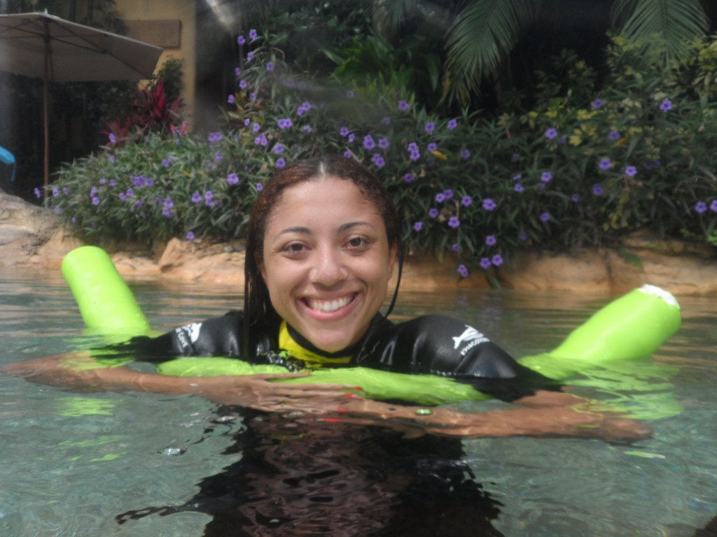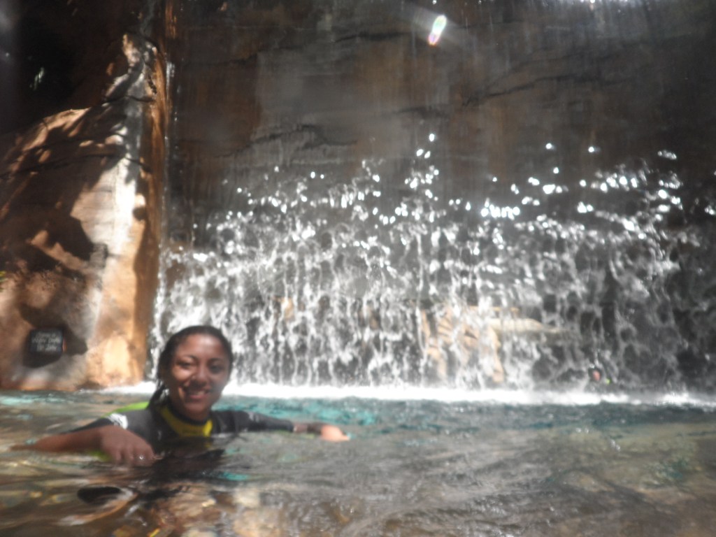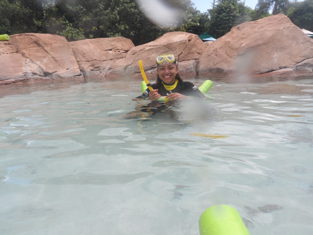 Uma das áreas do parque que eu mais gostei foi o Grand Reef onde você nada com vários tipos de peixes e arraias gigantes! Dá um pouco de nervoso no início, mas depois você acostuma.