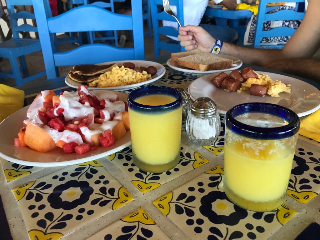 Já o ingresso base do Xcaret não garante alimentação incluída. Para que você tenha direito a 1 refeição você terá que comprar o ingresso Plus que dá direito a uma (1) refeição Buffet com bebidas não alcoólicas incluídas (escolhemos o almoço e tomamos café no hotel), armários, snorkel, toalhas e coletes. O ingresso base não inclui alimentação e nem armário gratuito. Você também pode escolher a opção com transporte pagando um pouco mais.