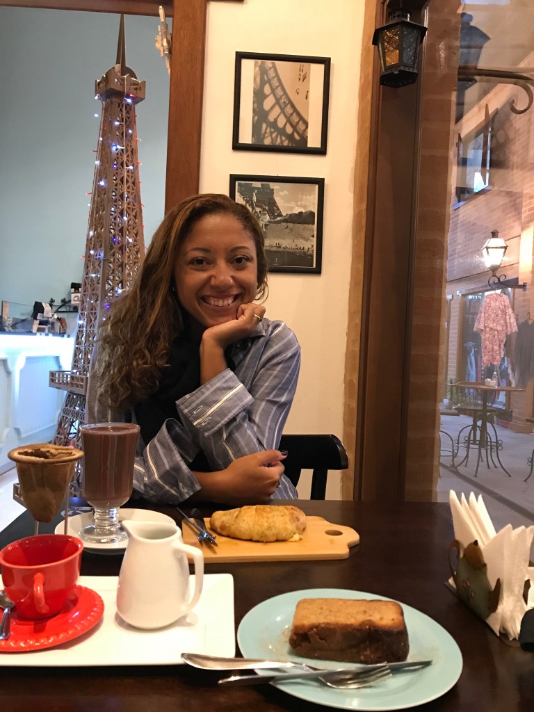 Saímos de lá e voltamos para a vila já na hora de um cafézinho e paramos no Bistrô das Meninas. Um restaurante/café muito lindinho com uma livraria maravilhosa dentro e praticamente uma padaria francesa também. Tomamos um café ótimo e comemos uns docinhos que estavam deliciosos. Deu vontade de levar uns pãezinhos daquele pra casa.