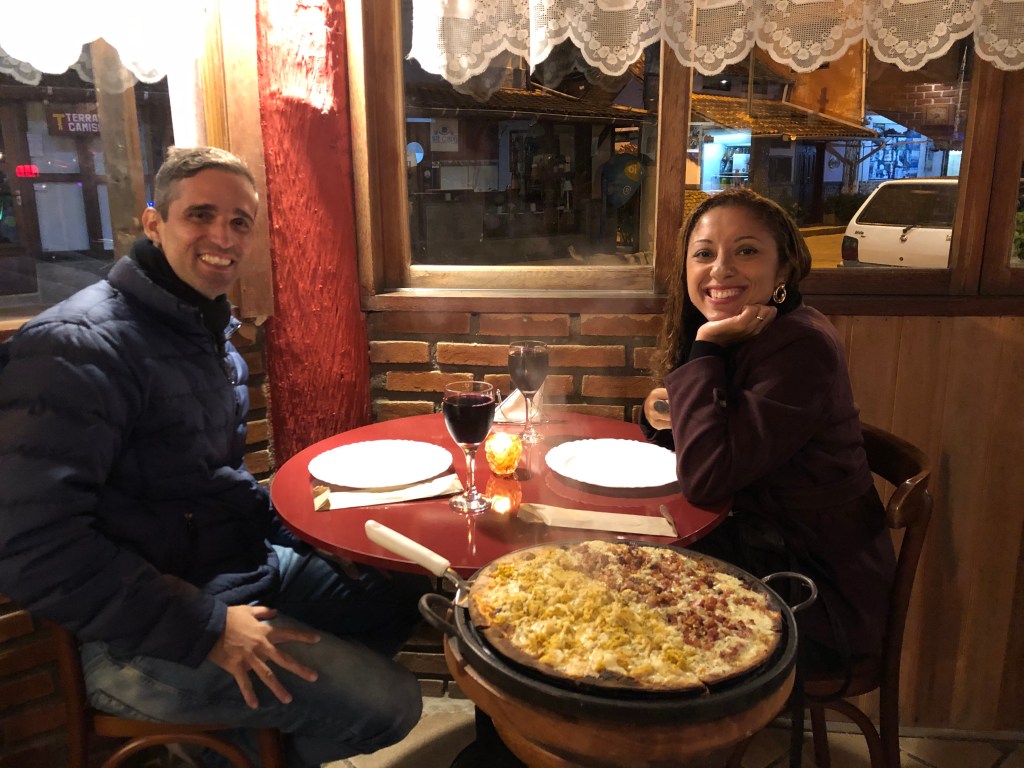 À noite jantamos no restaurante Casa di Pedra bem pertinho da nossa Pousada.