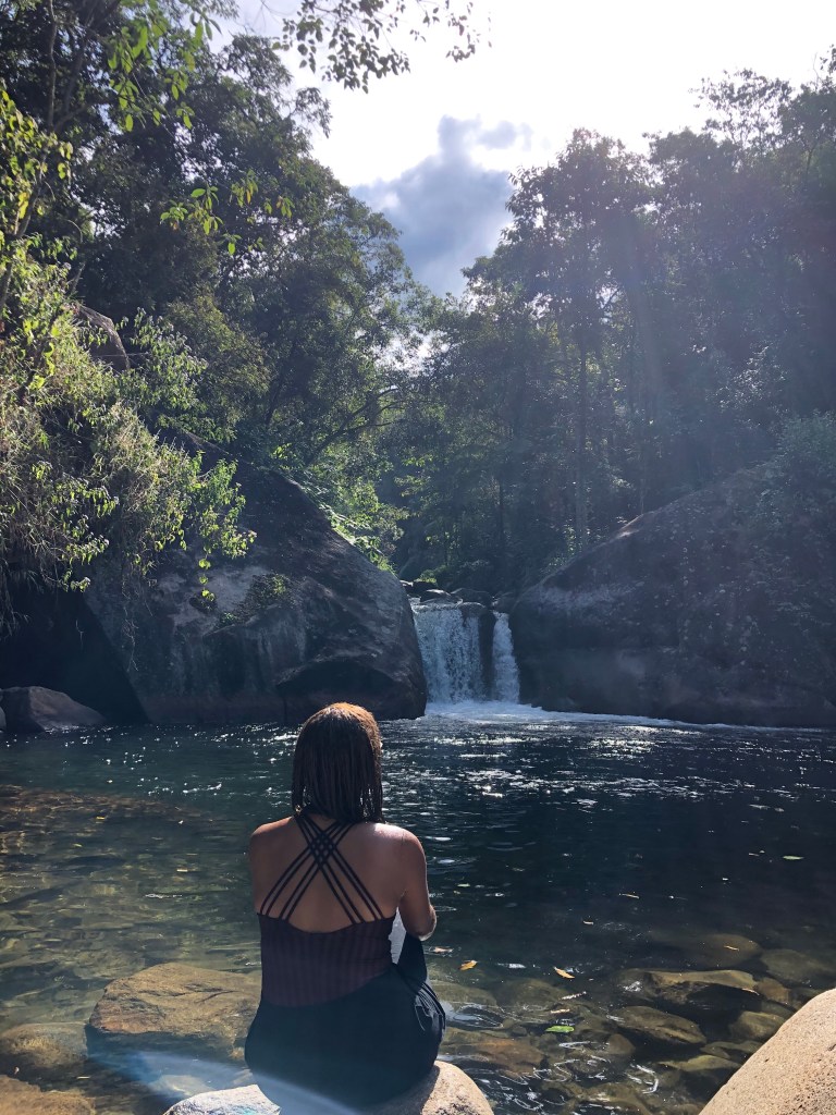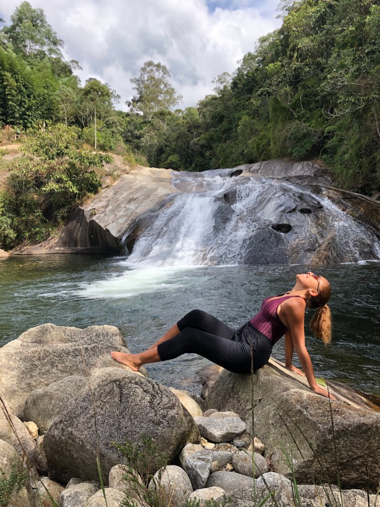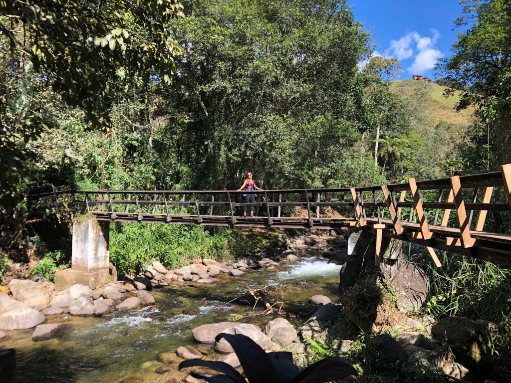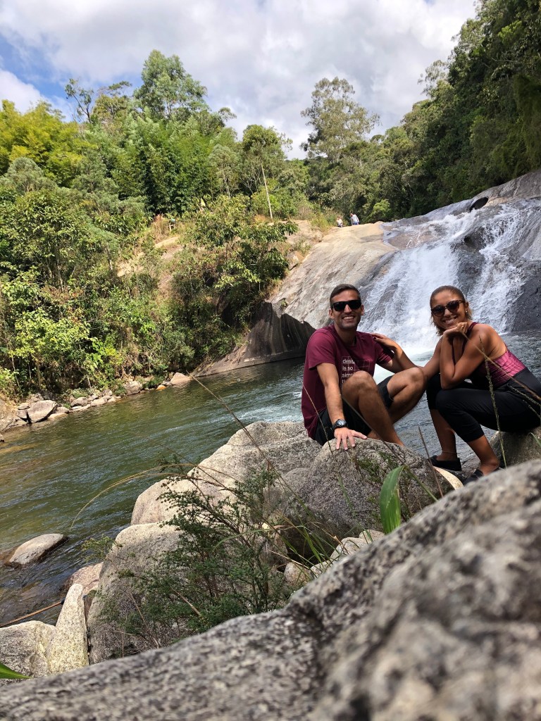 Dia 3– Dia de conhecer as famosas cachoeiras da região. Pegamos o carro e fomos até a vila de Maromba. Colocamos no Waze o nome da cachoeira Poçao de Maromba e quando chegamos perto dela tinha uma plaquinha de um estacionamento pago e optamos por colocar lá. Algumas pessoas estavam deixando no caminho mesmo mas atrapalhava demais a descida na estrada de terra e não quisemos deixar na rua.