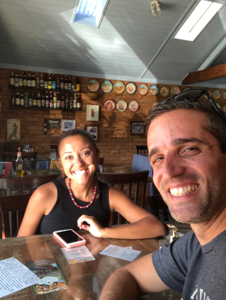 Saímos de lá e comemos uns torresminhos e um caldinho verde na própria lanchonete do estacionamento. Lá perto da Cachoeira do Escorrega tem vários restaurantes bem bonitinhos mas ainda não estávamos com fome quando saímos de lá.