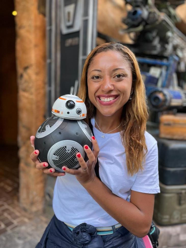 Depois disso, o cast member te dá as orientações de como usar o controle para guiar seu droide! Nesse momento você deve testar todas as opções e tirar todas as dúvidas hein. Lembre-se de que você vai levar seu droide pro Brasil, se não tiver alguma coisa funcionando você precisa resolver ali mesmo na hora.