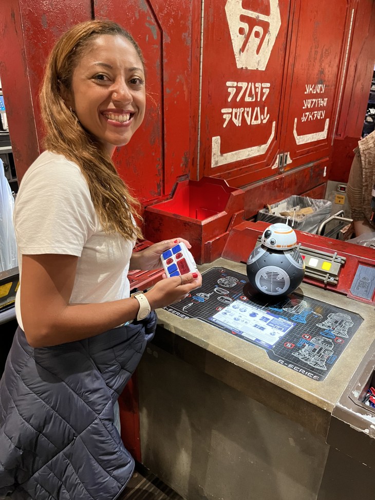 Savi’s Workshop e o Droid Depot. No primeiro você monta seu próprio sabre de luz (tem toda uma cerimônia) e no segundo você monta o seu droide personalizado! Gente, eu fiquei doida quando soube disso! Pensei: gente, eu posso ter o meu próprio BB8 mas de cores diferentes! Ai não, eu precisava ver isso de perto! O sabre de luz eu acho legal, inclusive já demos para os nossos sobrinhos de presente, mas foi o pronto que vende nas lojas de star wars, não esse personalizado que é diferente. Mas quando vi que poderia ter meu próprio droide, isso eu realmente achei incrível.