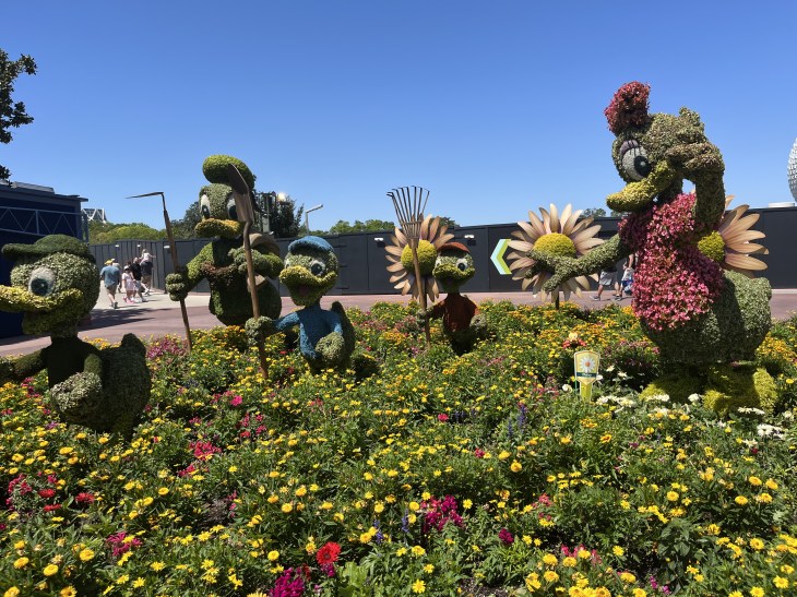 E hoje vou mostrar um pouquinho do Festival de Flores que como o próprio nome diz tem essa temática de jardinagem! Já entramos no parque com uma topiária linda em homenagem ao aniversário do parque e dos 50 anos da Disney!