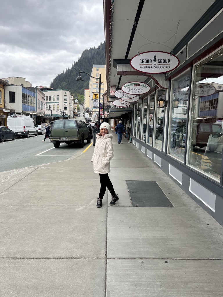 Quando chegamos no centrinho ainda deu tempo de dar uma voltinha que é cheio de lojas incríveis e restaurantes legais. Queríamos ter subido no bondinho de Juneau assim como subimos no de Icy Strait Point, mas não dava mais tempo.