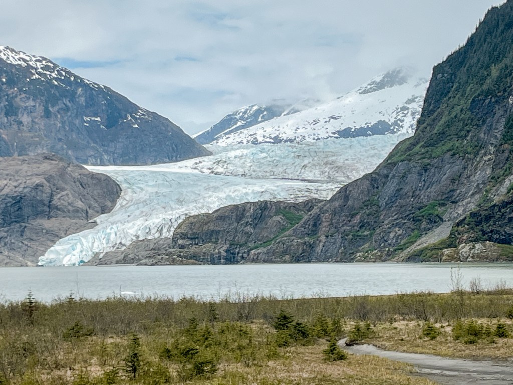 Ficamos umas 3 horas no mar, com as montanhas lindas ao fundo e avistando baleias e depois voltamos para o ônibus e fomos em direção a Mendehall Glacier, uma das principais geleiras do Alaska.