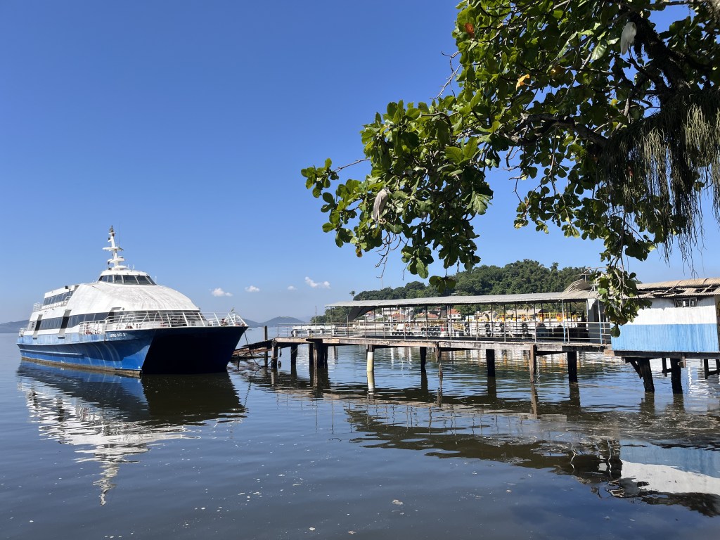 Saímos cedo de casa, estacionamos próximo à estação das Barcas no centro do Rio e já fomos logo pegar a Barca. Chegamos uns 20 minutos antes da saída da próxima barca. O ideal é sempre olhar no site os horários de saída porque elas demoram um pouquinho. Compramos nosso ingresso ali na bilheteria mesmo e embarcamos. Aproximadamente 40 minutos depois já estávamos descendo lá na ilha. No caminho a vista é linda, a barca passa por baixo da ponte Rio-Niterói e quando vamos chegando pertinho você já consegue ver alguns pontos da ilha, como a casa da Moreninha.