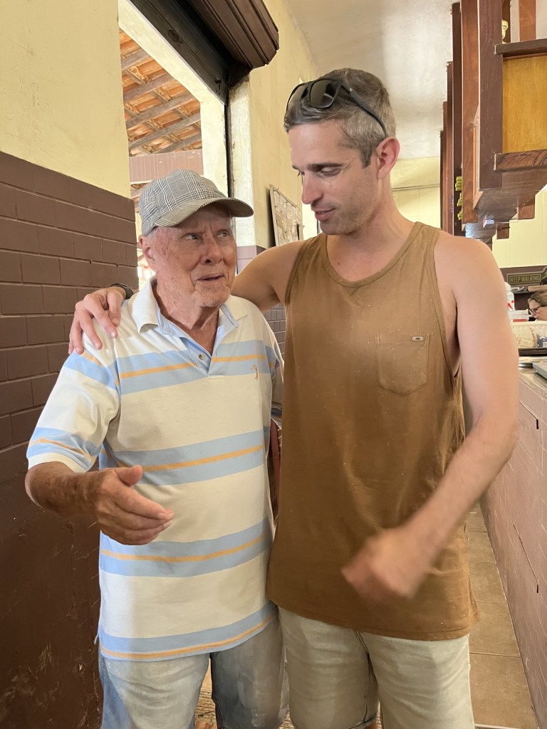 Dali paramos para almoçar no Zeca’s, um restaurante que tem de tudo um pouco no cardápio. Pedimos um churrasco misto e estava bem gostosinho. Os atendentes eram bem simpáticos mas o que nos impressionou mesmo foi o seu Zeca que estava lá passeando pra lá e pra cá cumprimentando os clientes do restaurante. Paramos para conversar com ele que nos contou sobre o restaurante, sobre a família…uma simpatia em pessoa.