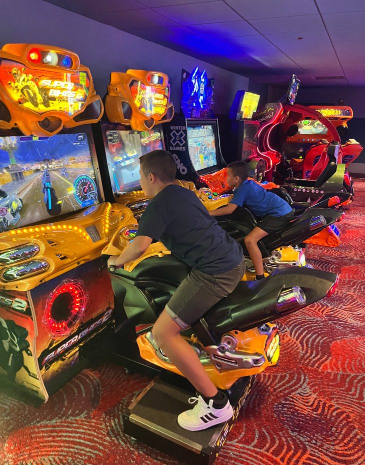 Tem também uma mini loja de conveniência com alguns doces, biscoitos, refrigerantes, onde eu comprei um livro de receitas lindo da Disney e tem um arcade, que os meninos amaram. Compramos um cartão e colocamos créditos e eles ainda ficaram um tempão lá brincando (falaram que foi quase mais um dia de parque hehe). Ainda tinha uma cabine para aquelas tirinhas de fotos que você também podia pagar com o saldo desse cartão. Eu amo! Você compra o cartão em uns tótens dentro do próprio arcade.